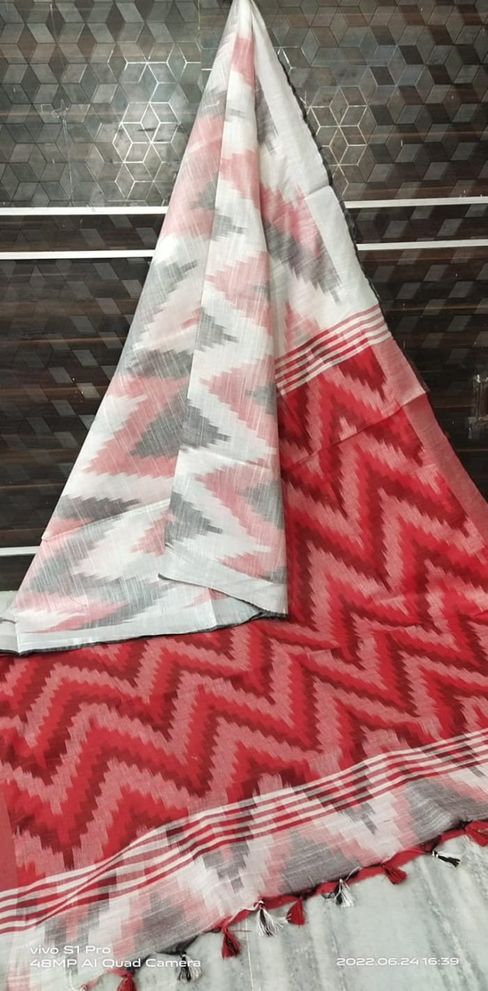 Cotton Viscose Slub Ikkat Weaving Saree #77