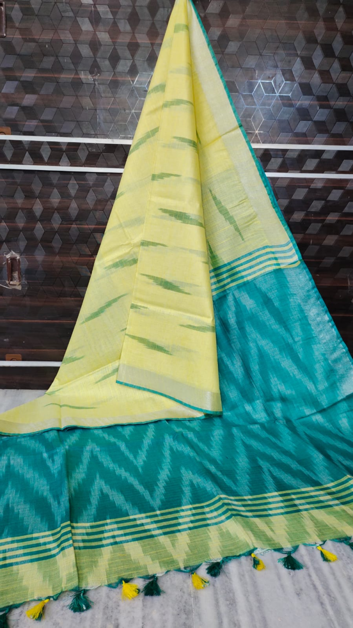 Cotton Viscose Slub Ikkat Weaving Saree #79